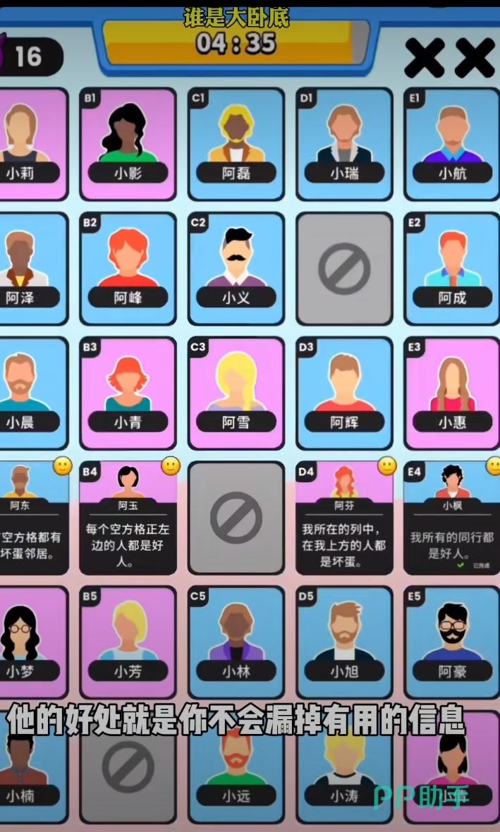总之,《谁是大卧底》以其独特的玩法、丰富的剧情和多样的角色技能,为玩家带来了极具挑战性和趣味性的游戏体验。相信在正式公测后,一定会吸引更多玩家加入到这场推理与解谜的狂欢中来,成为社交娱乐和脑力挑战的热门选择。让我们共同期待它的公测,一起在游戏中展现智慧,享受推理的乐趣。