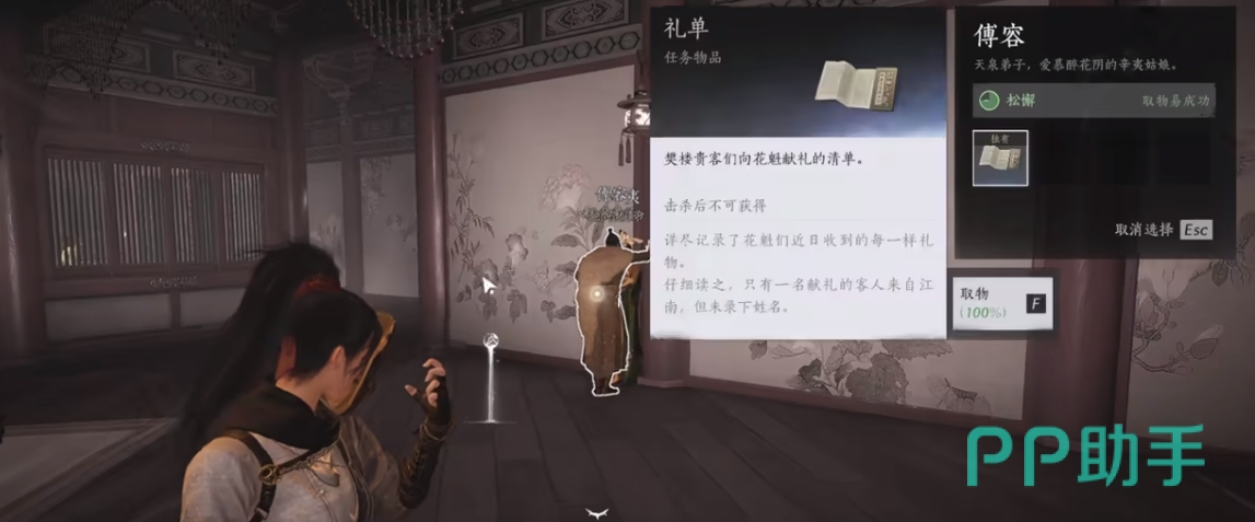 第五个线索:这个线索也是在二楼的屏风附近,找到小哥哥npc傅容,这里还需要用到奇术摄星拿月从傅容身上拿到线索;