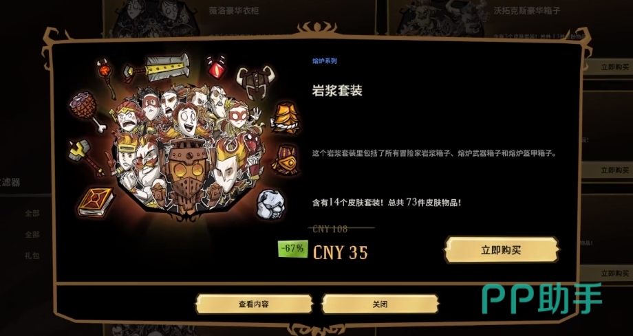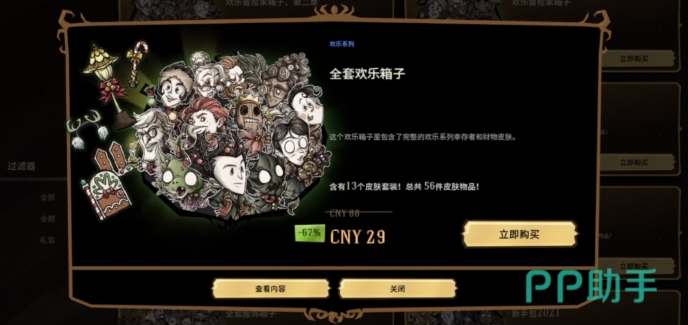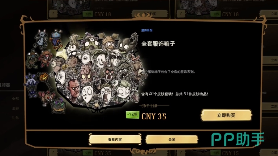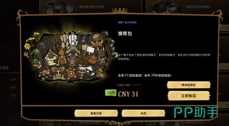 以上就是饥荒联机版值得买的皮肤有哪些的介绍了,这个游戏在皮肤套装上的定价还是比较良心的,折扣活动也很多,遇到喜欢的皮肤正在打折的话,不妨就拿下它。如果是那些刚刚上线的皮肤箱子的话,可以选择等一等或者是通过编织的方式来获得。