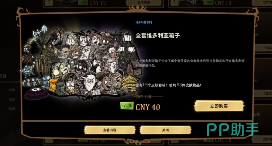 这些推荐是基于玩家对这些套装中的大多数皮肤都很满意,如果只是一两件满意的话,那也要办法让玩家获得自己心仪的箱子。在众多的箱子中选择折扣力度最大的箱子,比如说这套维多利亚箱子,它的折扣力度最大,也最为划算。获得箱子后将其拆解成编织物,然后编织成自己喜欢的皮肤。