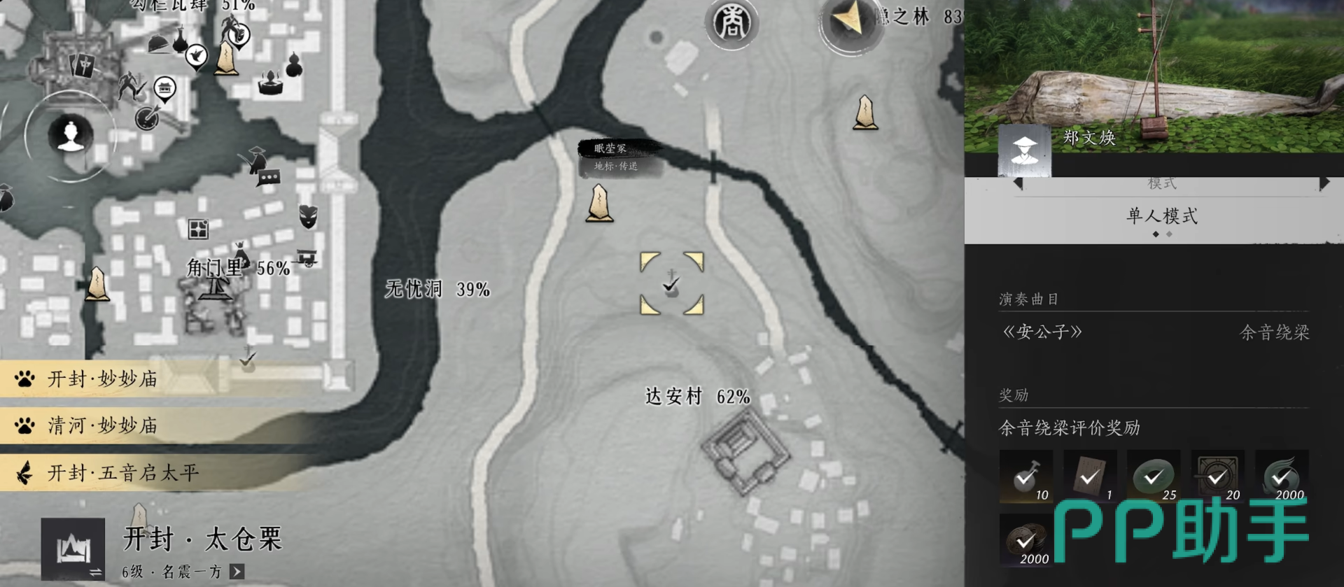 第二张乐谱位于达安村的眠莹冢传送点附近。玩家需要找到NPC郑文焕,并参与演奏安公子的任务。与第一张乐谱相比,这一任务的操作难度更低,主要是通过对话触发剧情推进即可完成。达安村的地形相对简单,大家只需根据地图指引找到这个位置,就能完成第二章乐谱获取的任务,就能够成功拿到第二张乐谱。这个任务的流程较为短暂,但情节设计非常贴合游戏的世界观,大家可以到游戏中试一试非常简单。