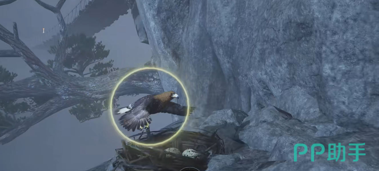 当你飞到悬崖边上的小亭子附近时,就可以开始寻找目标位置了。这个地方并不像一些任务地点那样显而易见,因此大家需要仔细观察。你要寻找的是一个有栅栏的地方,这个位置是进入鹰爪连凿获取区域的关键点。如果你在这个时候走得太快,或者不小心跳下悬崖,可能会导致任务失败,重新开始。因此,大家一定要慢慢走,沿着栅栏旁的小路走,保持冷静,避免失误。当你走到栅栏处时,就会发现旁边有一个鸟蛋,而这正是你获取鹰爪连凿技能的关键。此时,玩家需要做的就是向鸟蛋投食,一旦投食成功,就会看到一只老鹰飞到天空中。