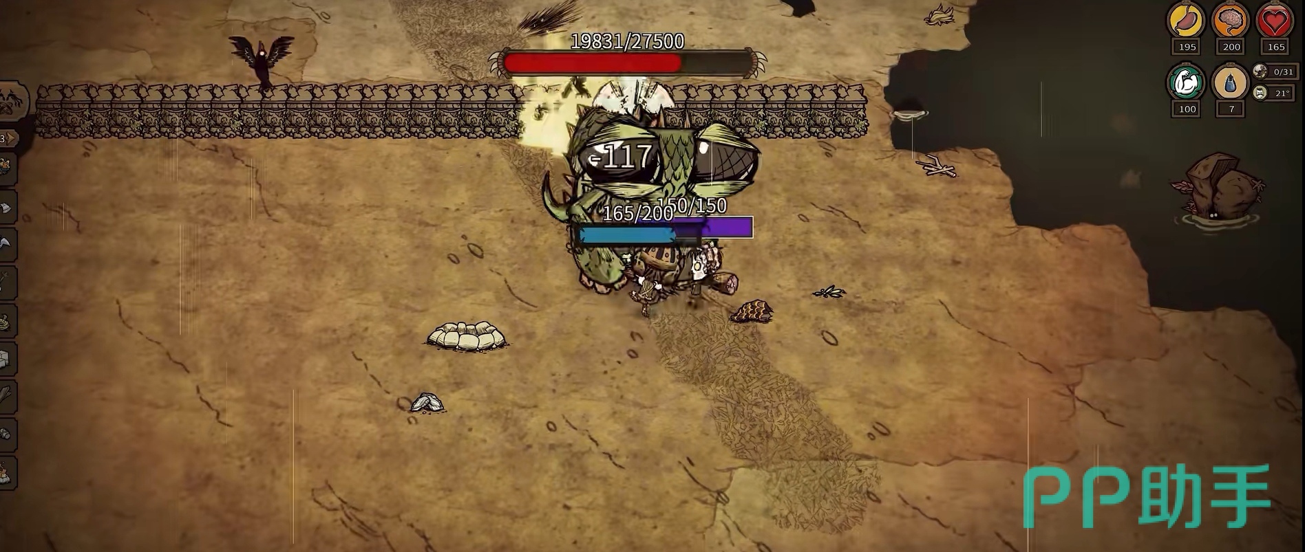 游戏的BOSS血量分别是:龙蝇--27500点血量;独眼巨鹿--4000点血量;熊獾--6000点血量;蜂后--22500点血量;独眼巨鹿(冬季版本)--8000点血量;冰雪巨人--12000点血量。其中的龙蝇、蜂后、冰雪巨人的血量都是破万的,说明它们打起来会比较费力,为此小编就来介绍一下它们的打法。