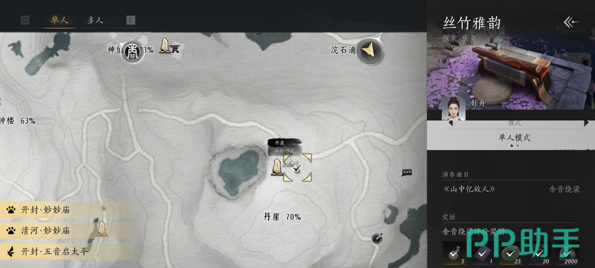 在游戏中,想要解锁古琴,关键在于收集几首特定曲子的乐谱。这些乐谱分别对应不同的地点与任务,需要玩家通过细心探索与一系列的演奏任务来完成。首先,在丹崖传送点附近,玩家需要找到NPC舒舟,完成她的演奏任务《山中忆故人》。当演奏结束后,就能获得第一张乐谱。这段任务简单易上手,只需根据指引找到正确的位置即可。