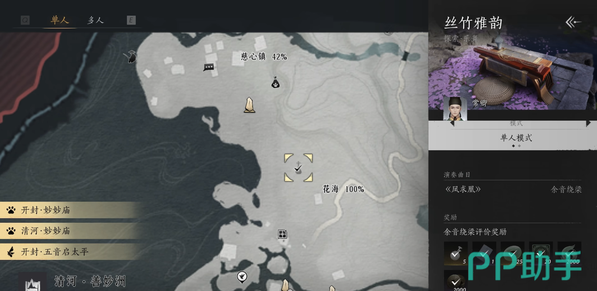 第三张乐谱的获取地点位于花海,具体位置是在慈心镇和不羡仙传送点之间。各位小伙伴在那边需要找到NPC常青,同时也需要按照他的要求完成他的演奏任务《凤求凰》。由于该区域的景色十分优美,小编建议大家可以稍作停留一下,欣赏一下游戏中的风景,感受那份浓厚的江湖韵味。等到成功完成演奏任务之后,这张乐谱便可以轻松送给各位小伙伴了。
