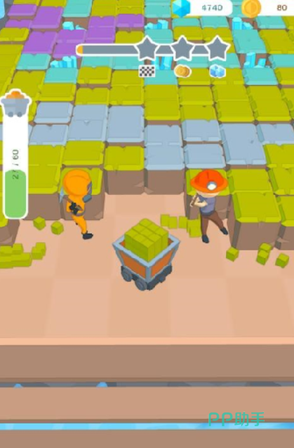 玩家在游戏中可以体验到从新手矿工到矿业大亨的成长历程。游戏提供了多样化的挖掘工具,如钻头、炸药等,每种工具都有其独特的使用场景和效果。此外,玩家还可以通过购买和升级小车来提高资源运输的效率,或是雇佣不同技能的员工来优化工作流程。玩家只需将工人定位到矿脉上,他们便会自动开始工作,收集资源。这些资源可以在市场上出售,赚取金币用于购买更先进的设备或扩展业务。