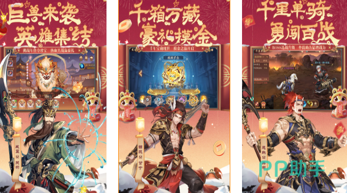 以各类传奇武将为主角的三国题材冒险手游,玩家需要招募不同的武将并加以培养让其具有更强的能力,同时在乱世纷争的中原大陆上探索旅行。游戏的活动非常多而不断更新全新的剧情,主要的玩法就是利用有限的资源来发展军队建设城池,然后发起攻城与防御的对抗,战斗场面宏大激烈,节奏适中战斗玩法刺激性很不错。