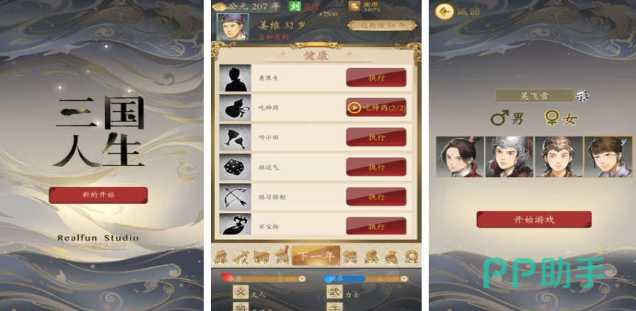 角色扮演类架空模拟手游,玩家将会穿越到三国时代成为一位身处于乱世中的武将,玩家将会体验穿越后成为古人的人生。玩家将会经历一系列的选择,通过各种机缘操作以及阴谋办法,或是成为加官进爵享誉天下的名臣武将,或是雄霸一方的主公,或者因为错误的选择葬送一切成为人人诛杀的匪首,游戏的剧情发展方向非常自由,反转较多且拥有多个IF线,让玩家可以反复挑战且充满乐趣。
