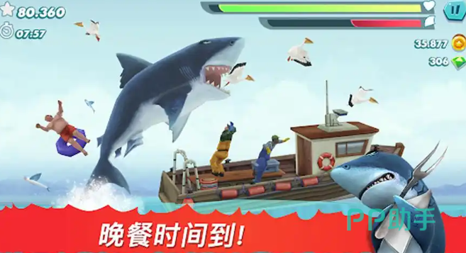 《饥饿鲨鱼模拟》是一款可以体验到成为饥饿鲨鱼的休闲类游戏,这款游戏当中,玩家将化身成为饥饿的大白鲨,通过在夜间扑杀的方式,来捕猎渔船上的人类,不止如此,玩家也可以捕食海洋之中的海底生物,例如鱼群等等,只需要玩家在每一天都达到了饱食度,就能够通关。