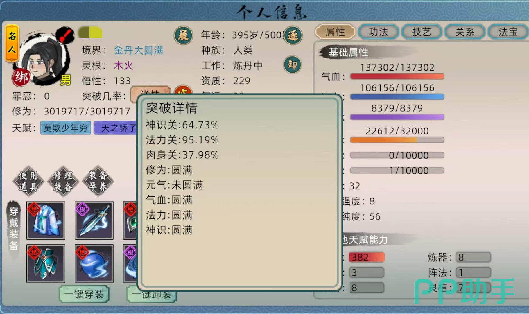 这三关对于属性的要求不同,先来看第一关神识关,影响神识的主要包括神识上限和道心以及神魂属性。主要是通过增加神识上限方式,来对此对神识进行增益。神识前不能通过装备来获得,只能通过天赋、功法来提升,所以选择天赋时,就要找那些能够增加神识天赋选上,后续如果出现了神识的功法也要学。