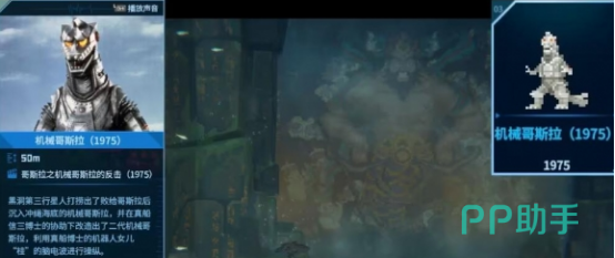 之后玩家们就可以来轻松的领取这个模型,在对话的过程中,会安装一个全新的软件,叫做怪物模型图鉴,大家可以在蓝洞全域来进行收集这些模型,一共会有超过20个怪兽,包括大家非常喜欢的哥斯拉1994,这个模型就位于深海区域鲸落地带,还有盖钢以及米里拉等等,都是非常受欢迎的怪兽,每一个怪兽的模型分布也是有区别的。