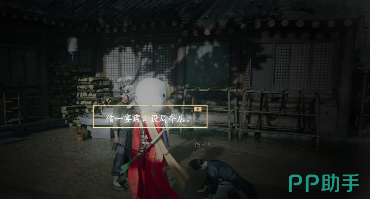 进入到着火的房子时,玩家可以看到一对正在说话的夫妻,此时不建议玩家直接绕到这对夫妻的面前进行窃听,而是前往到夫妻的房梁后窃听他们的谈话,在谈话之中,玩家就能够获得一叶平生任务的线索了。