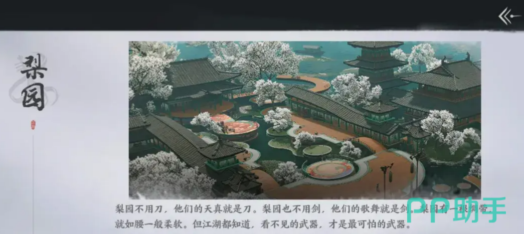 以上就是燕云十六声梨园介绍的内容了。如果你想要体验一场不同寻常的江湖之旅,喜欢舞蹈和艺术的结合,那么梨园会是你的最佳选择。赶快加入这个充满女性魅力与艺术气息的门派,让你在战斗中舞动剑气,展示不一样的风采吧!