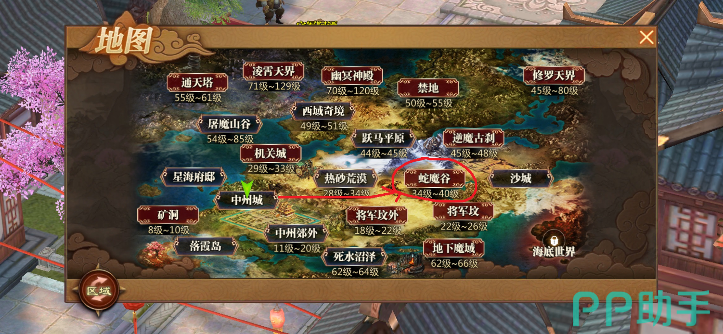 从地图中可以看到,蛇魔谷位于大陆的东部,紧挨着沙城,要想从中洲城去往蛇魔洞,中间需要穿过好几个地图,从地图上看热砂荒漠、将军坟和跃马平原都和舍魔谷相邻,那么具体应该怎么走那,让我们来一起看一看具体行程。