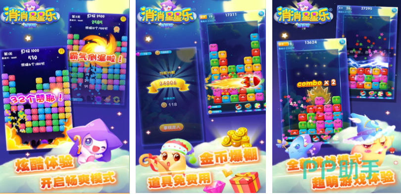 这款星星主题的消除游戏玩法也是老少皆宜,全新的画面和玩法给人特殊的消除体验,最新增加的挑战模式无疑增添了本作的魅力,畅爽的消除机制结合超多辅助道具可玩性更高,每次通关都能过解锁金币以便购买更多道具,消除特效极其华丽也让这款佳作有了更高的辨识度,这款最新版的星星消除类佳作值得老人挑战。