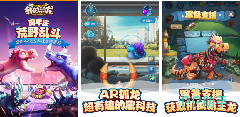 我的恐龙也是款能用AR技术抓恐龙并进行养成的作品,AR抓恐龙的特殊设定显得整体随机性很强,自由培养恐龙逐渐军团战斗的画面也很震撼,还为大家爱开发了虚拟建立家园的功能非常温馨,闲余时光你可以与自己喜欢的恐龙一起冒险,多元化玩法的融合令许多恐龙游戏爱好者着迷,列位AR手游爱好者快试试这款恐龙主题作品吧。