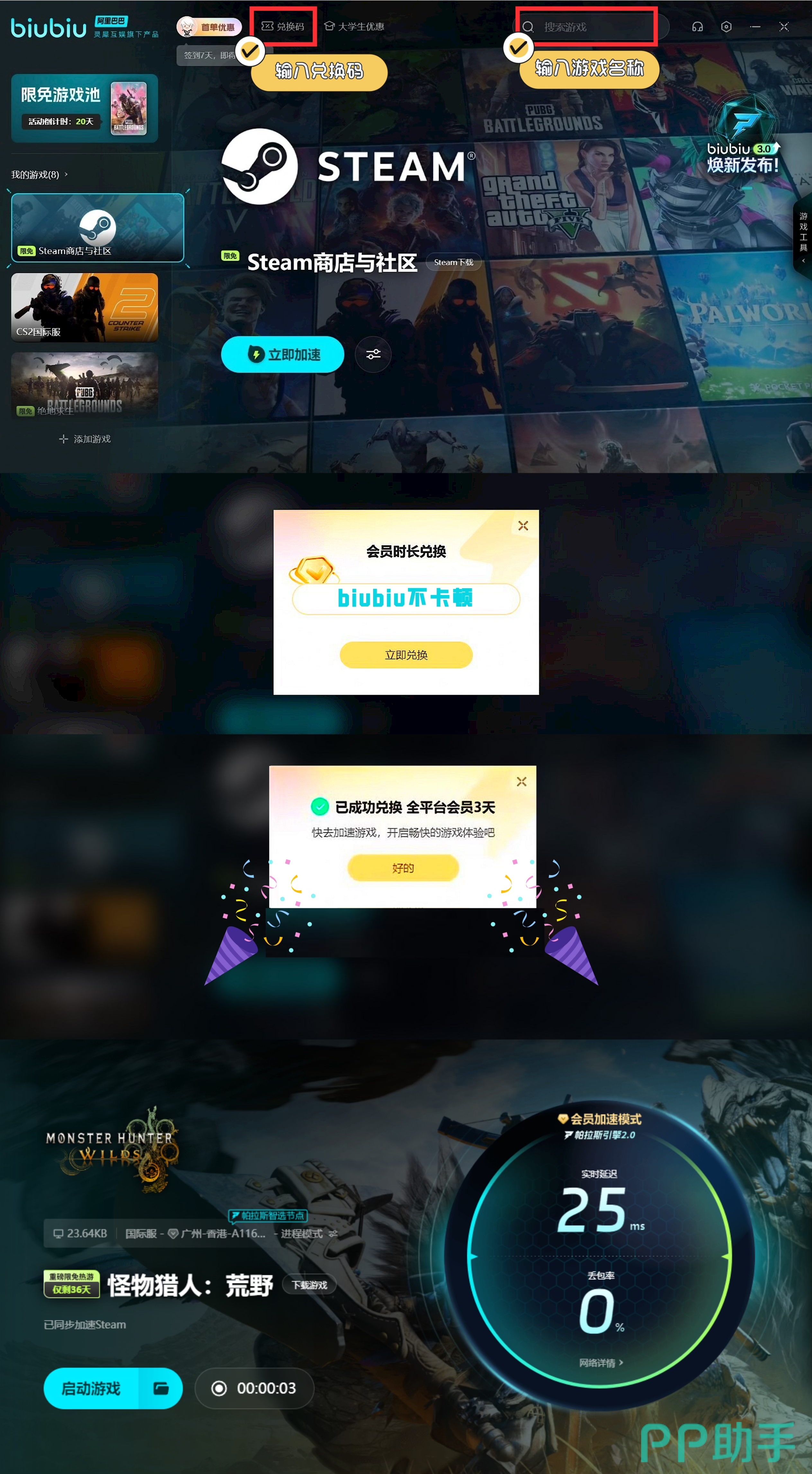 目前怪猎已经开启了第二次测试,biubiu联合怪猎官方也开发了一系列福利活动给大家,首先就是会在2月7日~17日开放关于怪猎的免费加速,在此期间每天完成加速30分钟或者是邀请好友一起加速可以获得多次抽奖机会,除了能够获得该作品本体之外,更有长达一年的biubiu家族会员时长等待玩家抽取,运气好的还能够获得实物周边奖励,如果上一次测试就经常出现炸房或者是加载慢卡顿的情况也可以安装试试解决。