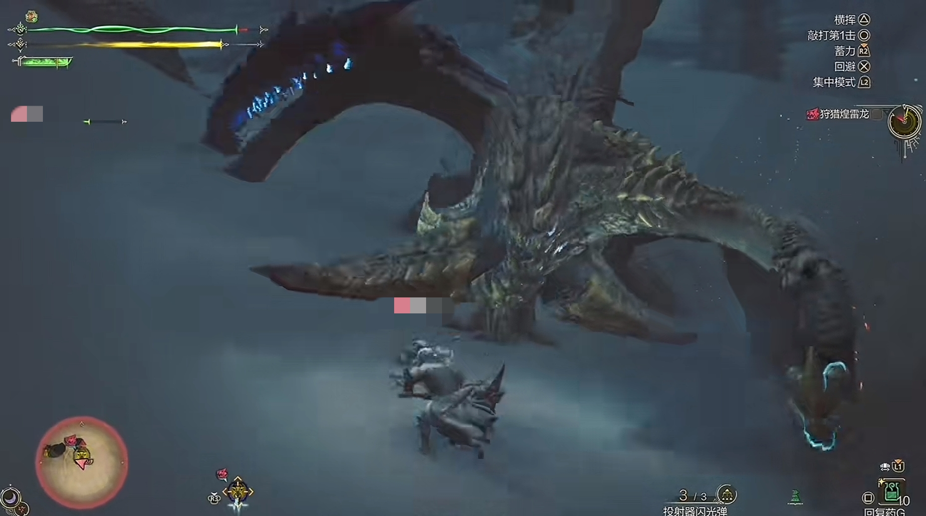煌雷龙其实在老玩家的眼里就是非常简单的一个怪物,在攻击的时候只要注意它的巢穴内部导电时的位置,这样会让其的绝大多数招式增加爆炸导电的效果,这也是很多玩家挑战不过的原因。其第一个技能就是将自己的头部快速的朝地面砸击,这种只要人物一直移动就可以躲避;而第二个就是姜尾巴向下砸去,这个有个明显的前摇所以也可以忽略不计;而第三个简单招式就是在砸下尾巴之后会向玩家角色甩一下,可以通过接近尾巴然后再远离来骗出该招式。