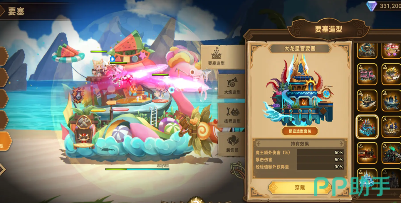 游戏的养成玩法和战斗玩法相当特殊,玩家最重要需要升级的内容是移动城堡的配置,玩家需要在主线剧情内容或支线剧情内容当中获得城堡的制作图纸,并且按照城堡所需要的造型设备进行收集和填充,从而整体性的增加自己在游戏当中的战斗力。