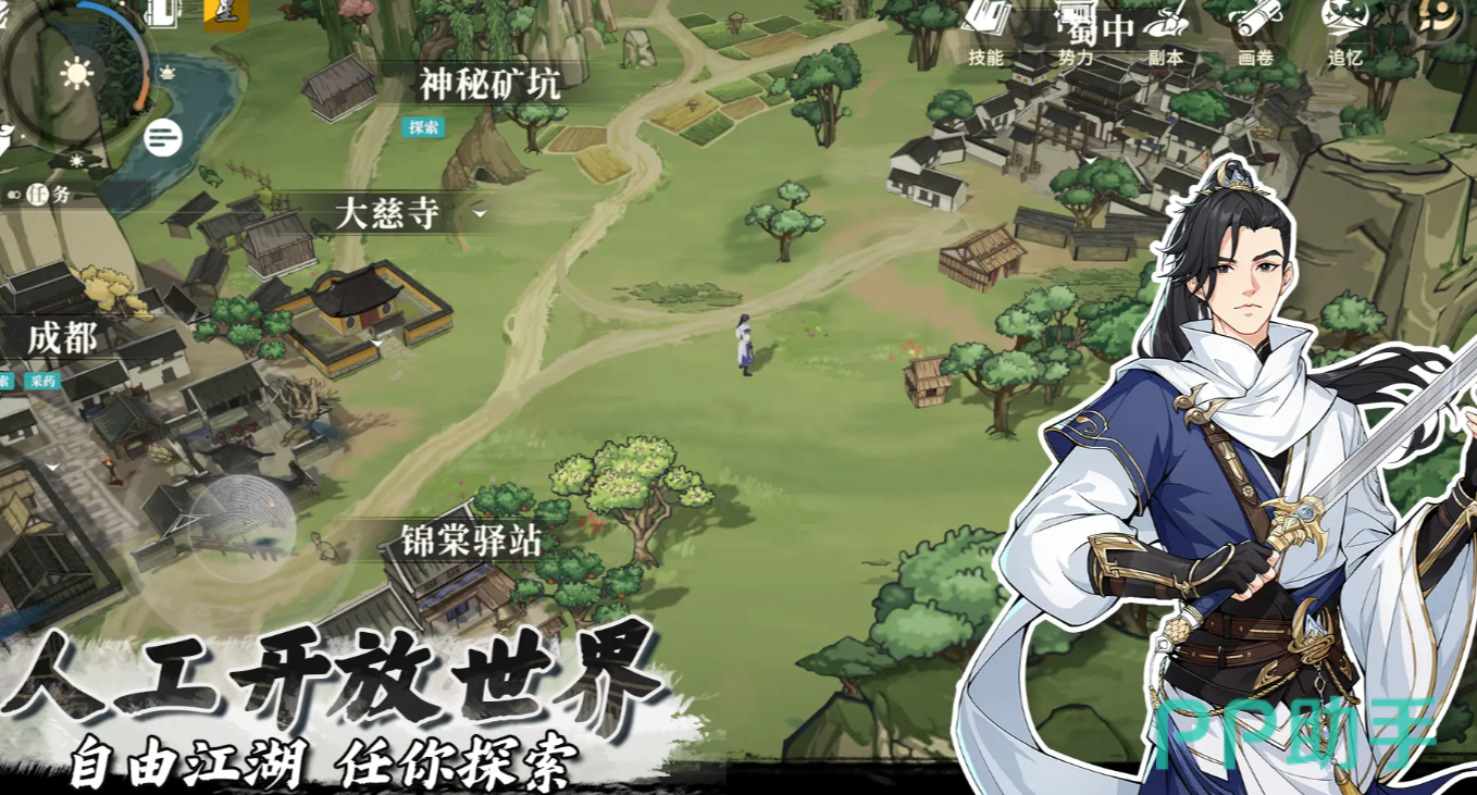 游戏的玩法分为两类,第一个是单机的pvp玩法,在单机玩法之中,玩家不仅可以挑战主线剧情的剧情,也可以在大世界之中探索,前往大慈寺、神秘矿坑、锦堂驿站等等地方进行搜寻,在搜寻的期间,玩家可以获得游戏内散落的物资。