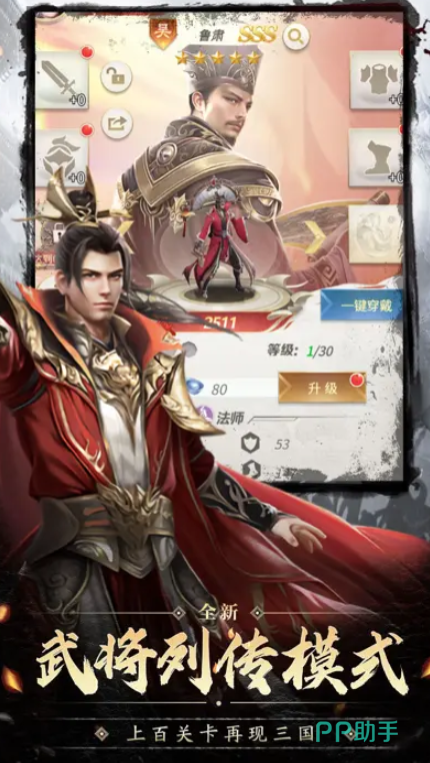 游戏当中的战斗方式很简单,采用的是回合制作战策略,玩家需要搭配合适的阵容,并且拼凑成正确buff属性数值,这样才能够在战斗之中获取更多的胜率,游戏内提升角色装备也是非常关键的一个内容,玩家可以通过击败主线剧情内容出现的boss,亦或是在游历期间,通过征战别国的方式来获取更多的武器装备配件。