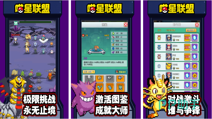 喵星联盟是个有着像素画风的竖屏精灵进化游戏,超多成就任务与图鉴系统提高了耐玩性,喵喵、喷火龙与可达鸭等经典小精灵悉数登场,1V1公平对战的交战机制深入人心,超大地图支持大家进行无止境的探索,特殊的喂食强化设定会改变宝可梦的状态,像素粒子特效极为精致也有着不俗观赏性,你也进入像素世界捕捉小精灵吧。