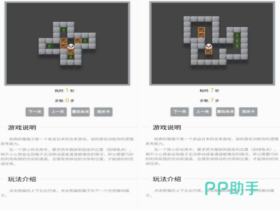 一般情况下,推箱子游戏都是满足需求的通关游戏,因为它也是涵盖很多关卡的,让每个玩家在挑战的时候,需要在狭小的空间里,将木箱利用推动的方式,到达指定的位置就可以了。玩的过程中需要有很好的逻辑思维能力,因为在玩的时候,如果箱子没有办法移动或者是遇到了通道被堵的情况,你就需要利用通道和空间,再加上安排移动位置等方式,才有机会顺利完成任务。