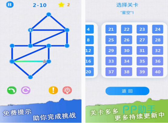 在一笔画这款深受大家喜欢的游戏中,也是需要动脑筋,才能完成任务的。有超多的关卡以及无限的乐趣,每次玩的时候你都需要开动脑筋,只要在简单的图案中,利用一笔画完成就可以。相对于闯关时,需要从第一个开始不断解锁畅玩的游戏,还支持选择关卡,选择了以后就需要发挥自己的实力,完成一笔画,还支持免费提示功能。