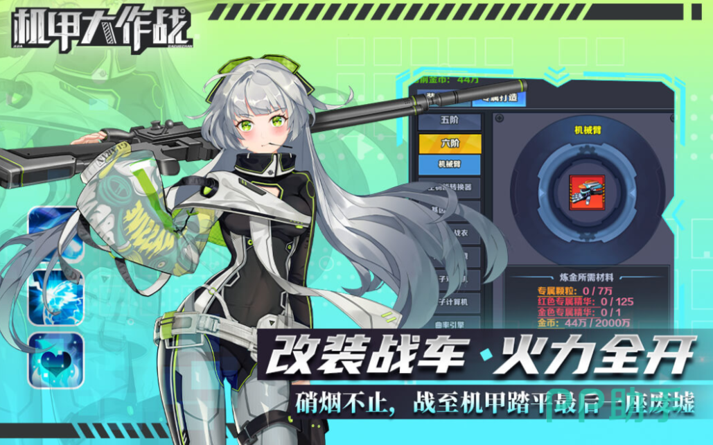 《机甲大作战》是一款以机甲为主要题材的二次元类战斗游戏,在这款游戏之中,玩家需要调遣机甲少女,一起改装战车,进入到大战之中,和敌人展开殊死的搏斗,游戏内的机甲种类繁多,玩家可以收集大量的机甲零件,从而拼凑成完整的机架,游戏内的玩法多样,操作难度非常低,值得休闲类玩家入手。