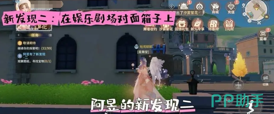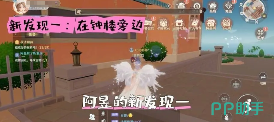 要说阿昱有了新发现,是在游戏当中他发现了三个新的地点,这时候玩家就需要帮他找到这三个地方,并且完成所对应的任务,玩家就可以获得奖励。阿昱的第1个发现就是要来到钟楼的旁边,仔细的观察一下周围的环境,这时候就能够找到阿昱所说的第1个发现。