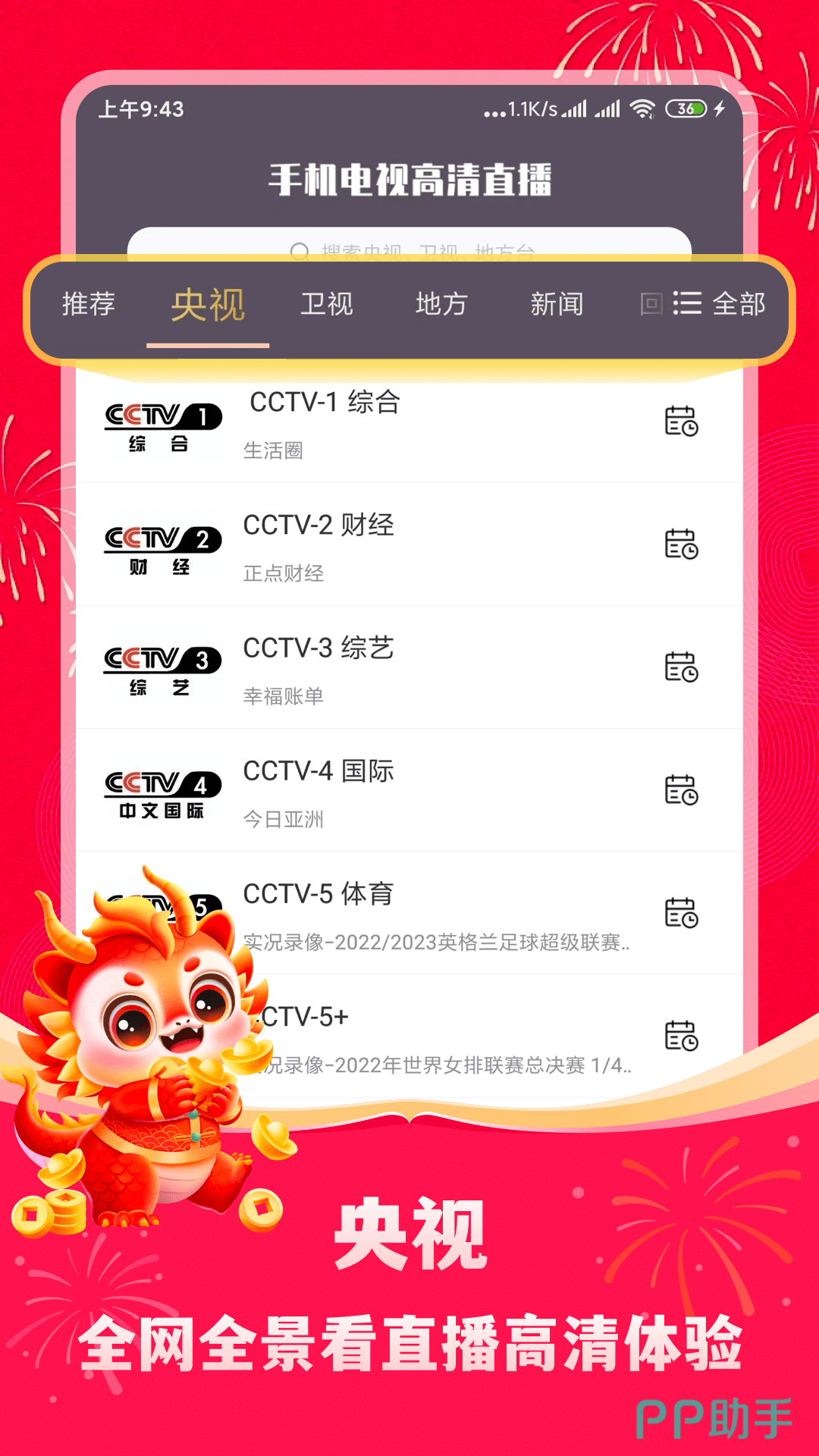 同样大家也可以在这软件上看一些电视直播节目,例如播放新闻实事的cctv,或者演绎一些热门大剧的电视台,只需切换就可以更改节目,提前预约就能及时观看。