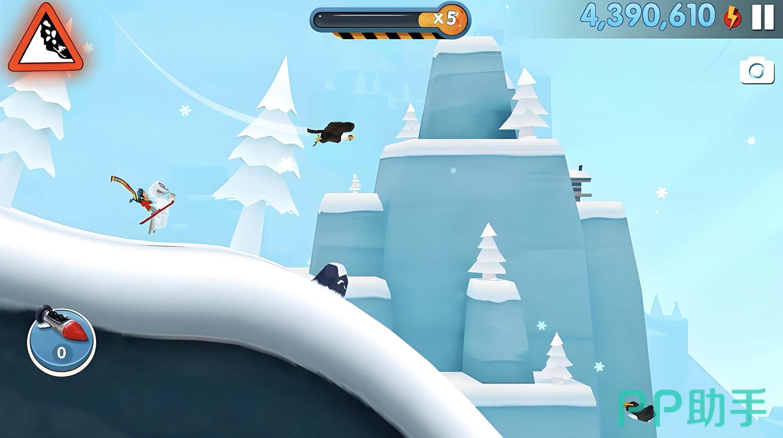 在《滑雪大冒险》游戏中,玩家将操控主角在雪崩的追赶下不断向前滑行,途中会遇到企鹅、老鹰等各种有趣的生物。玩法十分简单,通过左右滑动屏幕来控制角色的滑行方向,向上滑动可做出跳跃动作,向下滑动则能做出翻滚动作。玩家需要巧妙利用这些操作,收集金币和道具,同时躲避障碍物,在不断加速的过程中体验心跳加速的快感。
