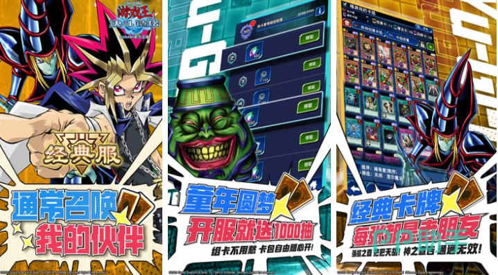 本作是最热门的一款游戏王漫改放置卡牌作品,抽卡召唤各种怪兽战斗的特性与原著动漫设定一样,更有一系列辅助魔法卡牌可随意使用,抽卡战斗的机制注重随机性也带来了许多惊喜,虽然采用了放置的操作方式相对简单,但想要获取胜利还是要考虑卡牌间的搭配,卡牌立绘以及技能效果都设定细腻。