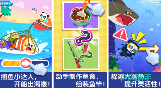 很多小朋友对游戏有严重的好奇心,这款游戏满足他们的好奇心,成为真正的捕鱼小达人,众多鱼类应有尽有超多海洋生物等你来探索。锻炼手眼协调力,每当鱼儿上高小朋友都会获得满足感。超过20多种海洋鱼类,让宝宝了解具体的名称以及生存方式和生活习性,在家长的协助下,成为真正的捕鱼达人开船出海。