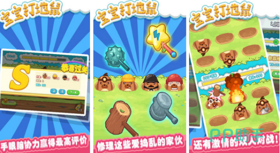 单机打地鼠游戏,锻炼手眼脑协调能力,简单的玩法与模式,清晰的画面让游戏拥有较高评价。虽然属于单机玩法,但推送出激情双人对战,我们可通过本地联机完成对战,陪小朋友共同打地鼠。有无线模式可一直打击地鼠,最终直到生命耗尽。这样的作品非常适合孩子与家长互动。