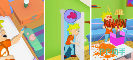 丰富的玩法让你的创造力得以释放,可设计各种恶作剧陷阱,提供多种道具,比如臭气、假蛇等等,玩家根据当前场景选择适合道具进行整蛊。游戏中的场景较为丰富,我们可来到办公室也可来到学校,还能整蛊邻居。整体操作简单易上手,只要点击拖拽道具即可完成,不需要过多复杂的操作。游戏玩法轻松又解压,轻松释放你心中的压抑心情。