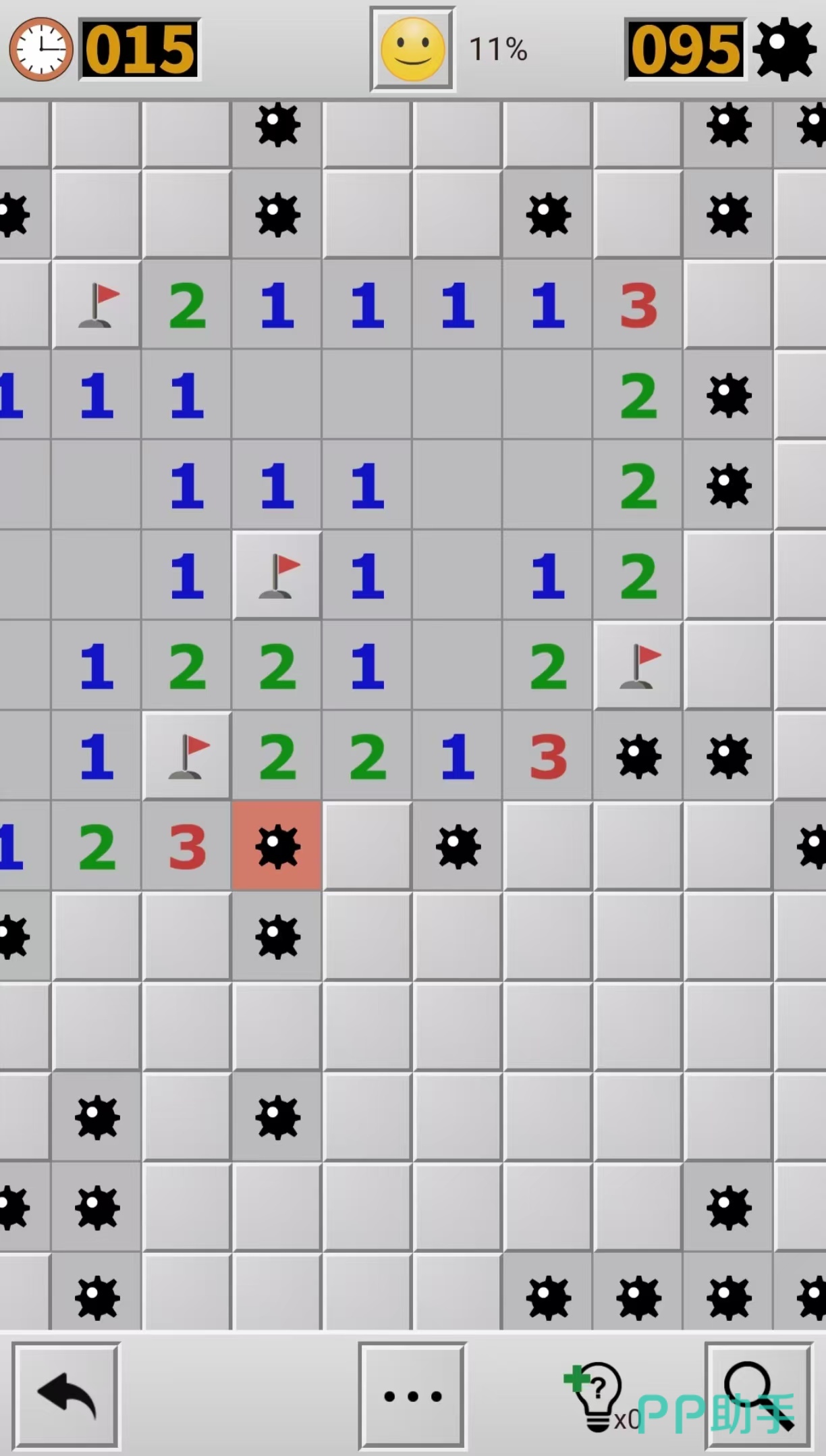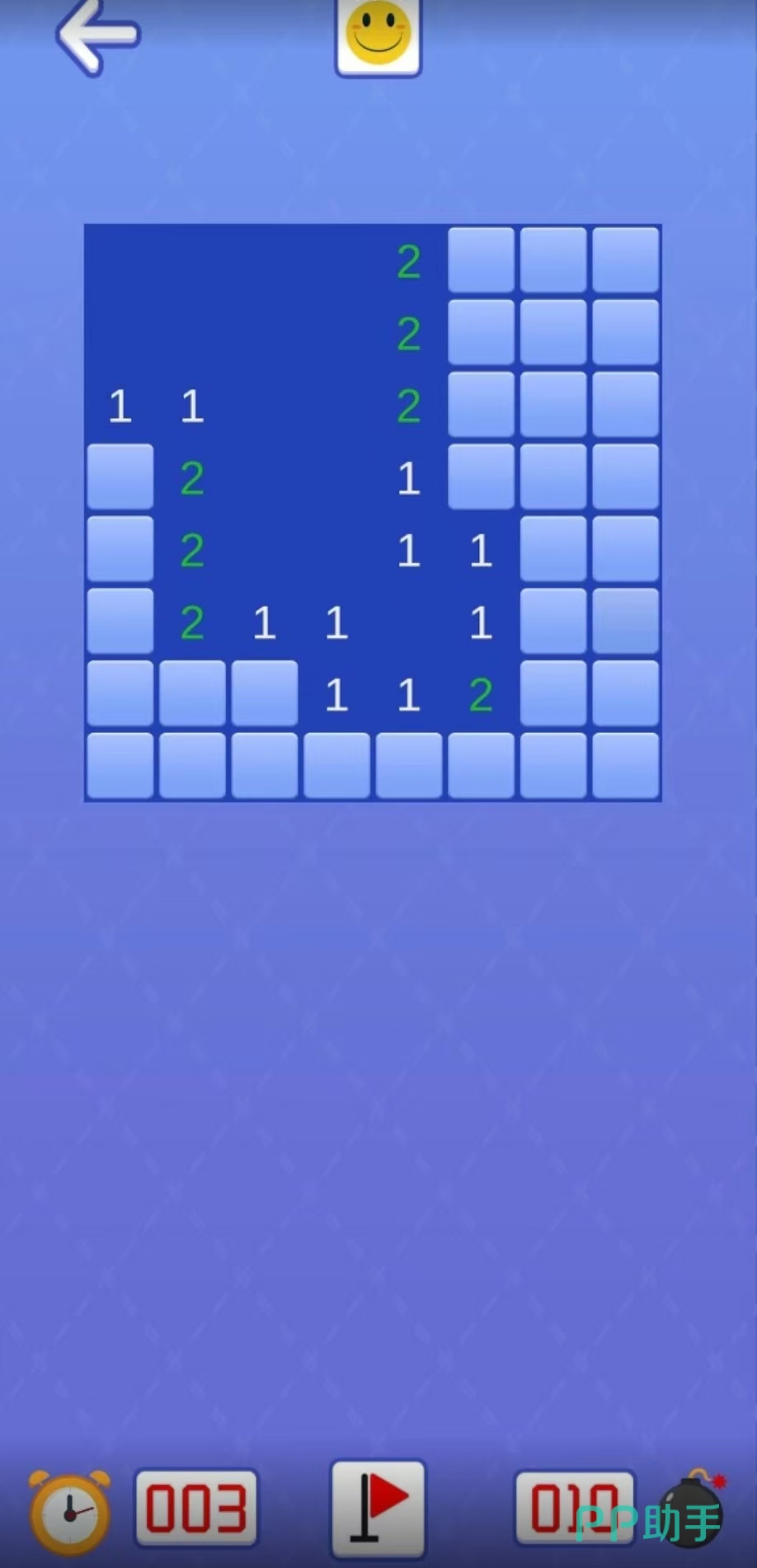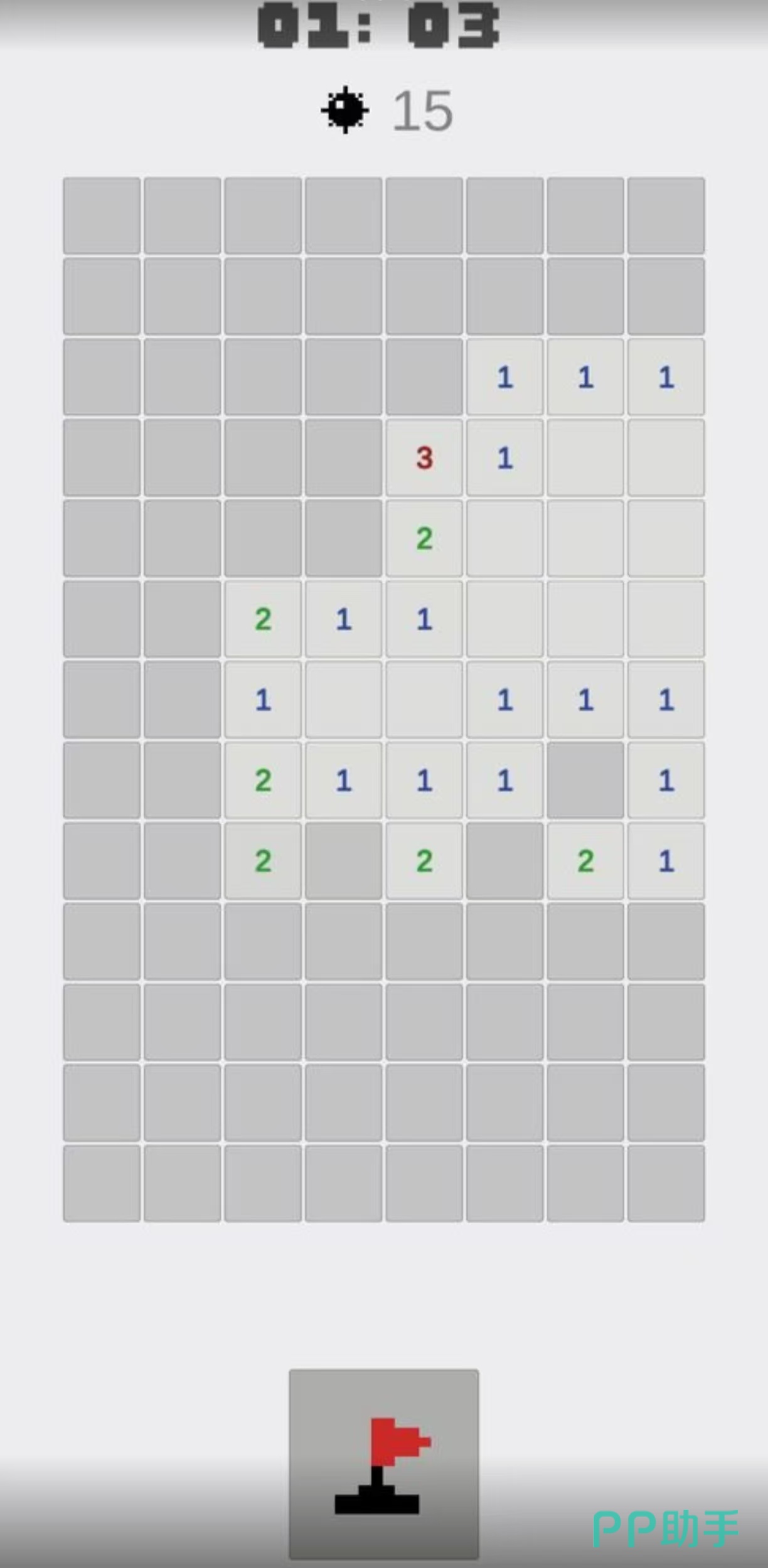 《扫雷大专家》是一个画面非常简单明了的休闲游戏,游戏中分为了初级,中级和高级三种模式,可以先从初级游戏玩起,游戏开始之后会有非常多个小方块,在小方块下有许多的数字和地雷,玩家需要运用一些技巧,把所有的方块点开并且不点到地雷。方块点开之后会有数字提示,提升的数字是几就代表周围有几颗雷,这款游戏需要玩家有充足的耐心。