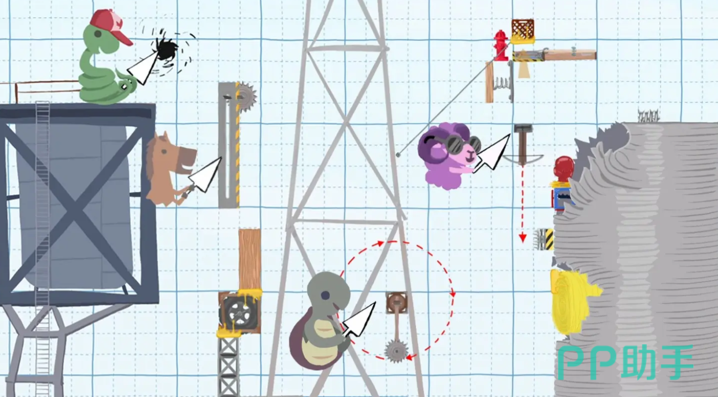 本作的玩法非常特别,大家可以扮演各种可爱的动物,在开始之前可以轮流放置各种不同的道具,来自由构建关卡,然后和其他玩家竞争前往终点,期间每回合还能自由选择一件道具,包括阻碍别人的障碍物或者是增强自己的增益,再次放置,率先抵达终点的玩家将获得胜利,这种与好友一起自由构建官咖的玩法能大大增加游戏的趣味性。