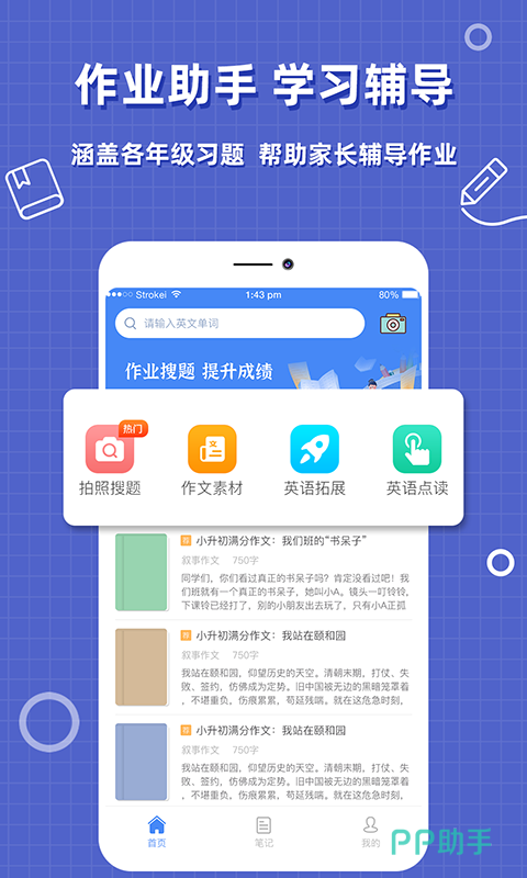提供了各个年级的不同阶段习题,实现帮助家长辅导,帮助学生促进学习的作用。拥有海量题库覆盖,做错的题都能找出原因来进行解析,还有英文点读,同步练习,查单词等各种学习工具提供。