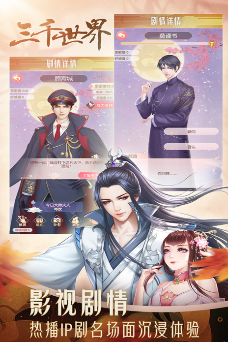 这款游戏为了让你犹如踏入视听盛宴,特邀请了著名画师、声优来塑造场景布局、配乐、诸多角色形象及他们的音色。游戏中,你可以邂逅诸多美男子,他们个性不一,一定有你心动的一位,你可以攻略他。游戏的剧情互动模式定能让你兴趣大涨,其会时不时弹出人生选择题让你选,你的抉择会改变你的人生走向。