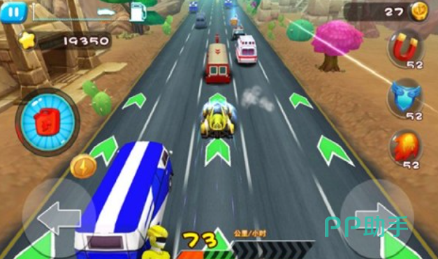 本作是具有神兽金刚IP加持的上帝视角飙车手游,全新的竞速理念与科幻背景交相融合,主要玩法考验着大家灵活躲避的能力,大家可驾驶帅气赛车在道路上飞驰并获取道具,一共有五种型号的超酷赛车等你驾驭,加速、无敌等超多辅助BUFF等你搭配,列位神兽金刚动漫粉丝不妨玩玩这款飞车作品。