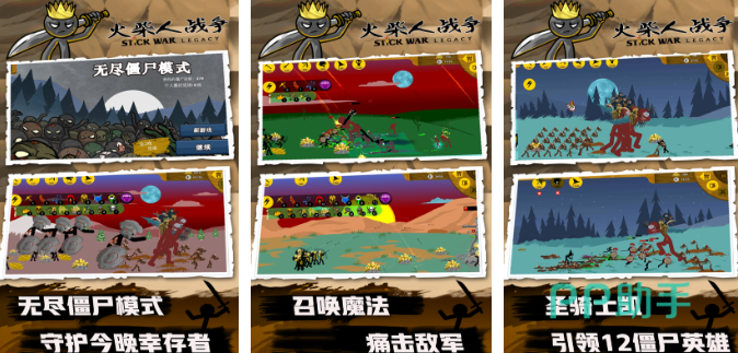 这是一款你绝对要试试看的火柴人塔防手游!因为游戏有超刺激的无尽僵尸模式,在这好玩的模式中玩家可以自由派出不同的火柴人兵种,比如说近战的火柴人,或者是火柴人弓箭手等等,来应对可怕的僵尸大军!在抵抗的过程中,你甚至要与那些极其强大的巨型僵尸对战,利用每一个火柴人的独特作用,才能成功抵御进攻!如果觉得吃腻了,还可以选择释放魔法,用技能来消灭僵尸哦,你也快下载来玩玩看吧!