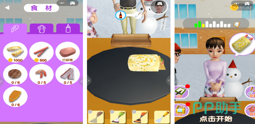 《一起摊煎饼吧》依旧是以摊煎饼为主的经营类游戏,只不过这款游戏的细节方面比较到位,你需要从面糊的制作方法开始入手,然后加入各种调料均匀搅拌,在案板上做出煎饼。当然除了煎饼以外,你的小摊上还可以制作其他食物,比如冰激凌和寿司等。除了制作食物以外,你还需要管理自己的小摊,比如要及时查看食材的库存和新鲜度等,等到赚到钱以后还可以升级或更换设备,提高煎饼的制作率。