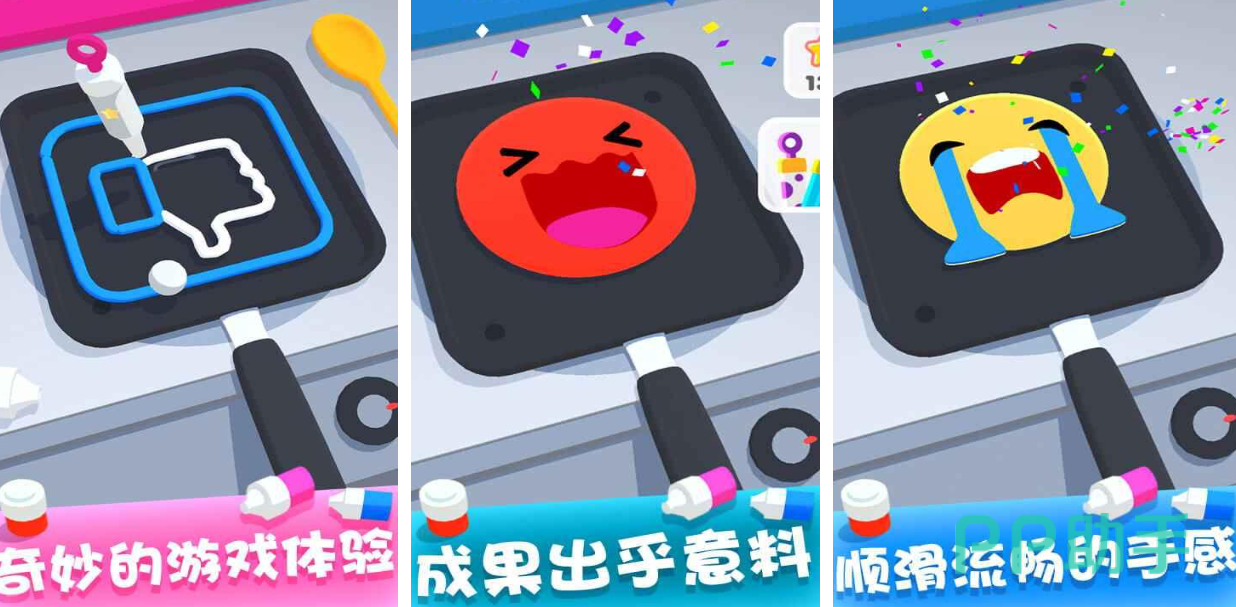 《摆个煎饼摊》的环境设定在一个充满生活气息的城市街道上,而你作为煎饼摊的老板,每天的任务就是制作煎饼,满足不同顾客的需求。而从顾客那赚取的金币还可以解锁更多的食材以及道具。虽然是简单的摊煎饼游戏,但乐趣十足,也可以在自己的煎饼锅上摊出不同形状的煎饼,比如笑脸、哭脸和星星等,是一款充满了创意性的游戏。