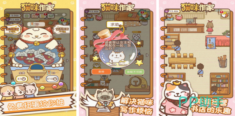 猫咪作家把小猫做了一个拟人化的设定,游戏里这些小猫不再依靠人去生活,而是能成为像人一样的作家依靠写书获得资金支撑自己生活,而玩家在游戏里扮演的就是一个有商业头脑的小猫,将会开创工作室招募小猫写手产出小说,除了卡通画风的设定之外,在游戏里还有很多日式风格的融入,另外在游戏里还能经营书店,喜欢这种经营玩法的千万不要错过。