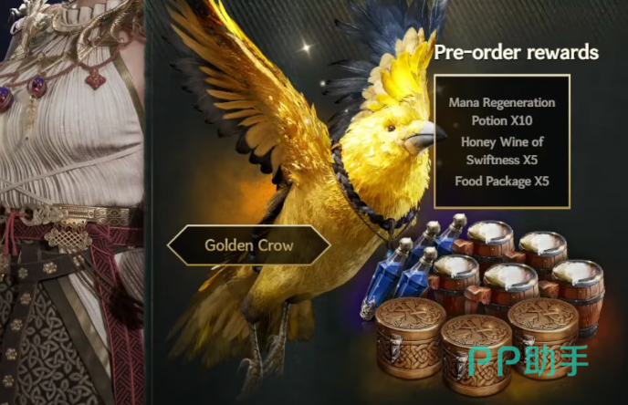 不过这里并没有太多飞行动画,而是会一个黑屏转场直接就抵达了目的地。在预购奖励中还有鸟的皮肤,或者说是另一种传送用的鸟,名为“金乌”,通身金色的羽毛很好看。