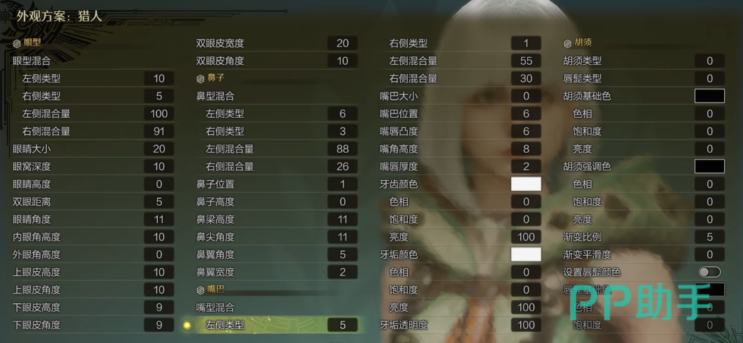 接着还有一些细节要调整,可以把眉头稍微调低一点,然后眼尾稍微拉的下至,这样看起来会更加的减龄,可爱一点。记得是微调,不要拉太过,不然看上去就有点奇怪了。小编喜欢的面孔详细数据下图中已经展示了,如果大家自己调整起来觉得不顺手,可以按照图中的数值预设,然后再微调。