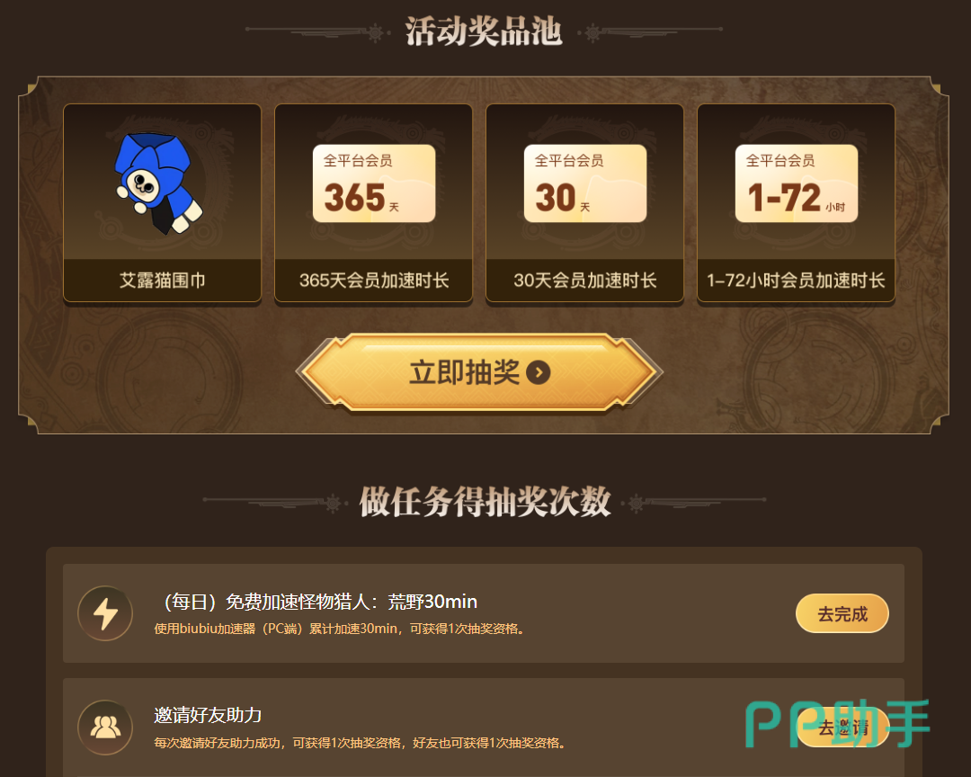而且活动也很多,我们要是每天都加速超过30分钟,就能领到一次抽奖机会,如果邀请了好友,还能多一次,奖品很多的,游戏本体或者是不同档次的会员卡,都能拿到,运气好的有1-72h或者是30天提速时间用,运气爆棚的则是可以用365天。