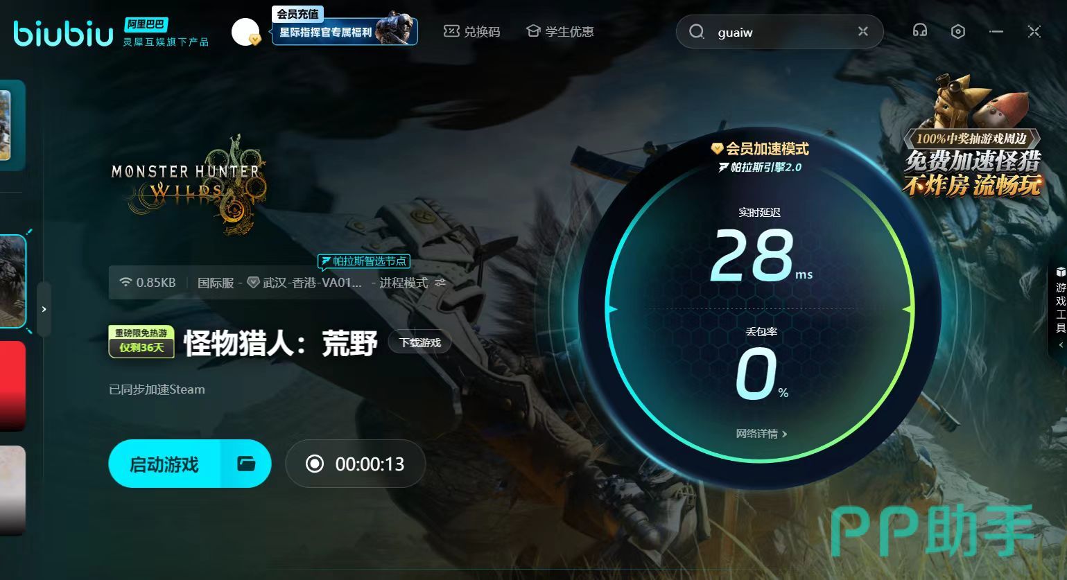 biubiu加速器现在开启了重磅活动,在2.7-17期间,可以给怪猎限免加速,大家在加速详情页就能够看到有详细的标注,各位赶紧去利用吧,开上就不会炸房了。