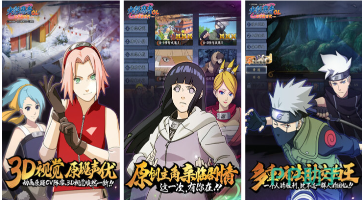 这款火影主题手游成功将开放世界跟漫改元素结合,开放的火影地图任由火影迷探索寻找,极为多样的奇遇任务显得整体内容更丰富,全新定义的3D忍者世界观看上去更写实,光影与动态效果更逼真让人沉浸于忍者世界,全三维形象的火影人物带来全新视觉体验,超前的开放大地图冒险设定也是火影粉丝的最爱。